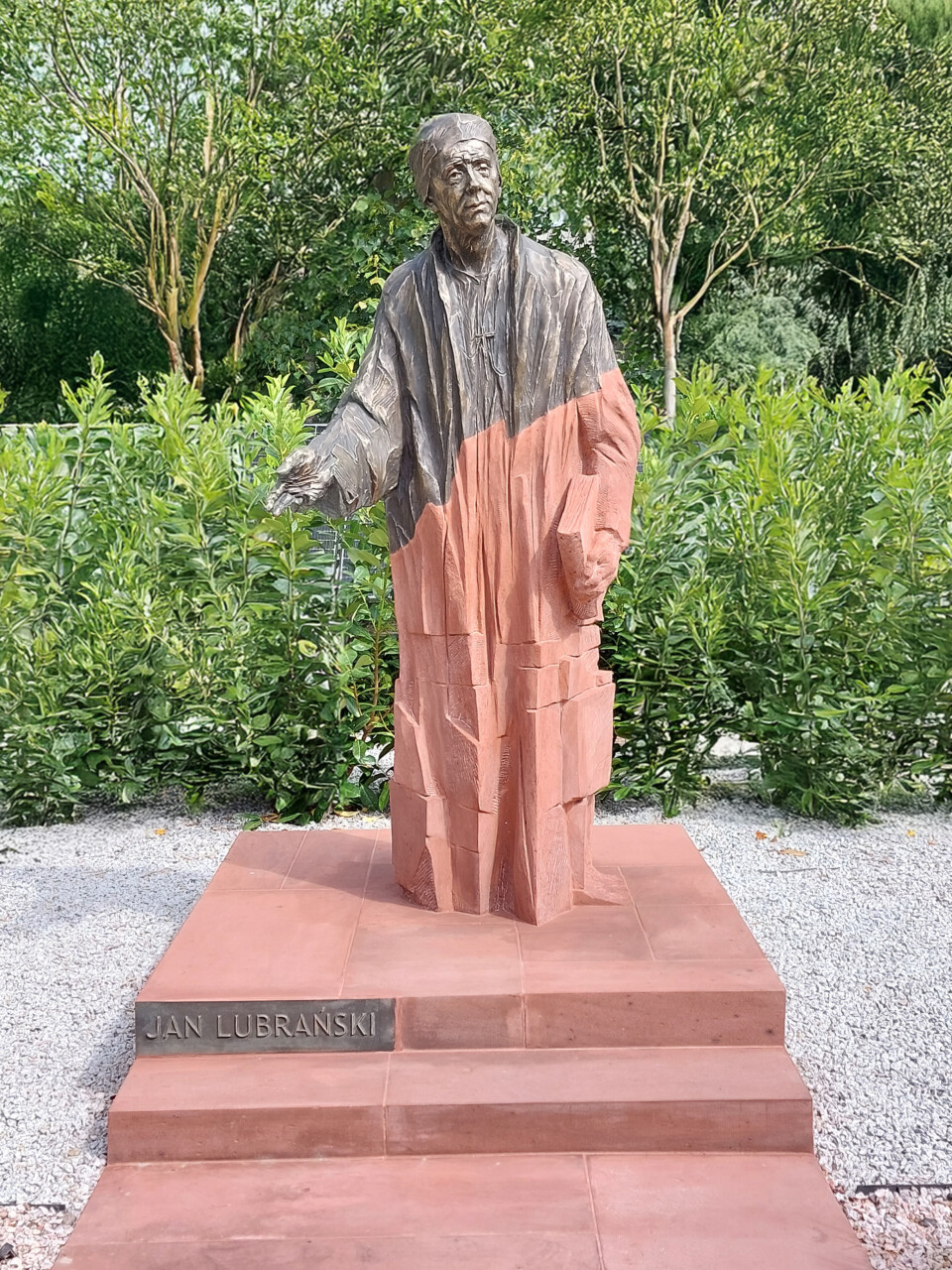 Pomnik Jana Lubrańskiego – aranżacja przestrzenna z czerwonego piaskowca