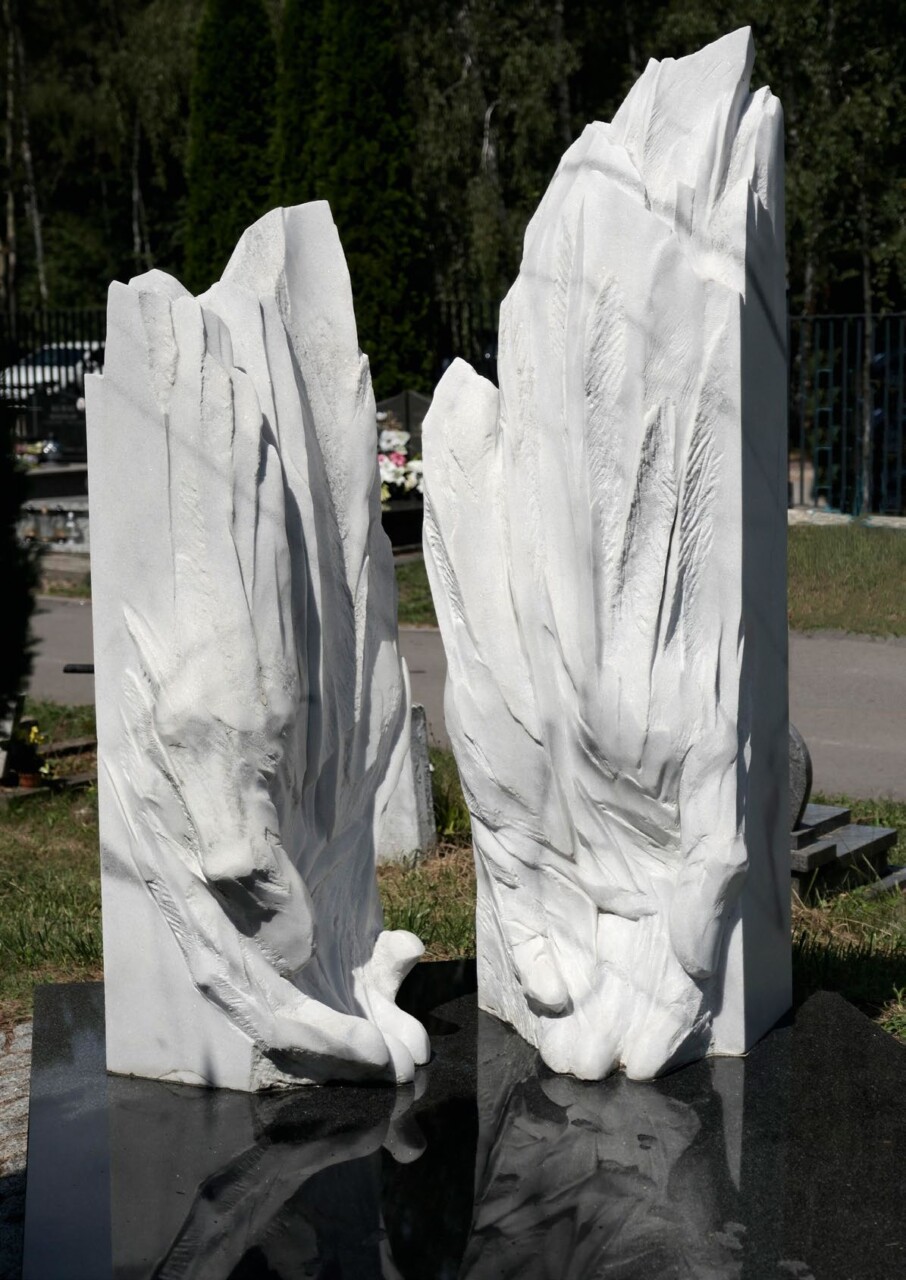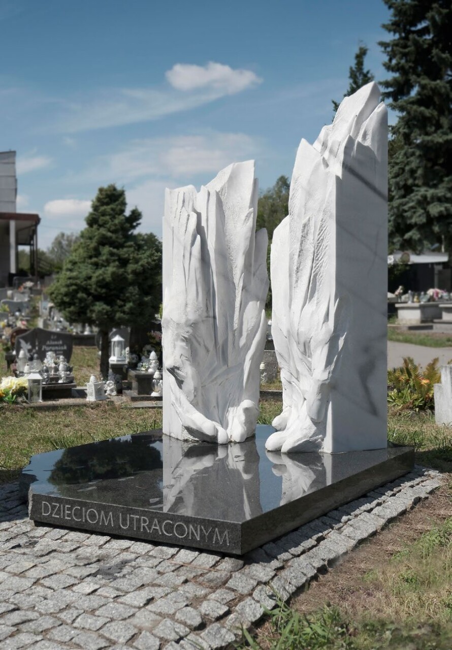 Pomnik Dzieciom utraconym, marmur polaris, granit impala, 214 (wys. całkowita) x 170 x 230 cm. cmentarz w Jaworznie-Szczakowej, 2014 r.