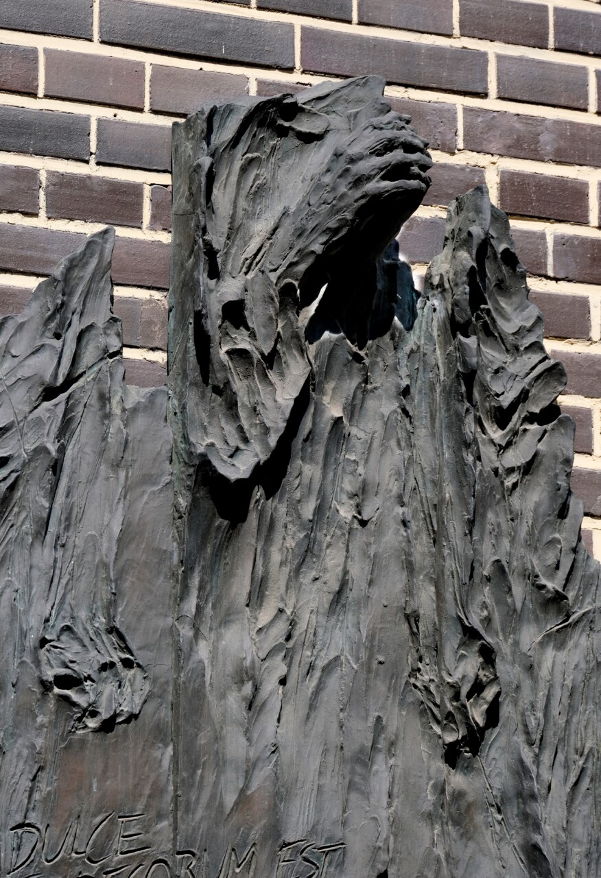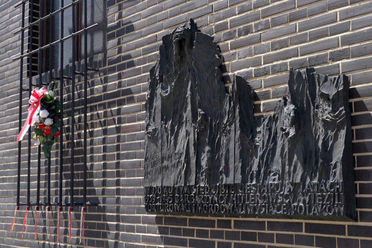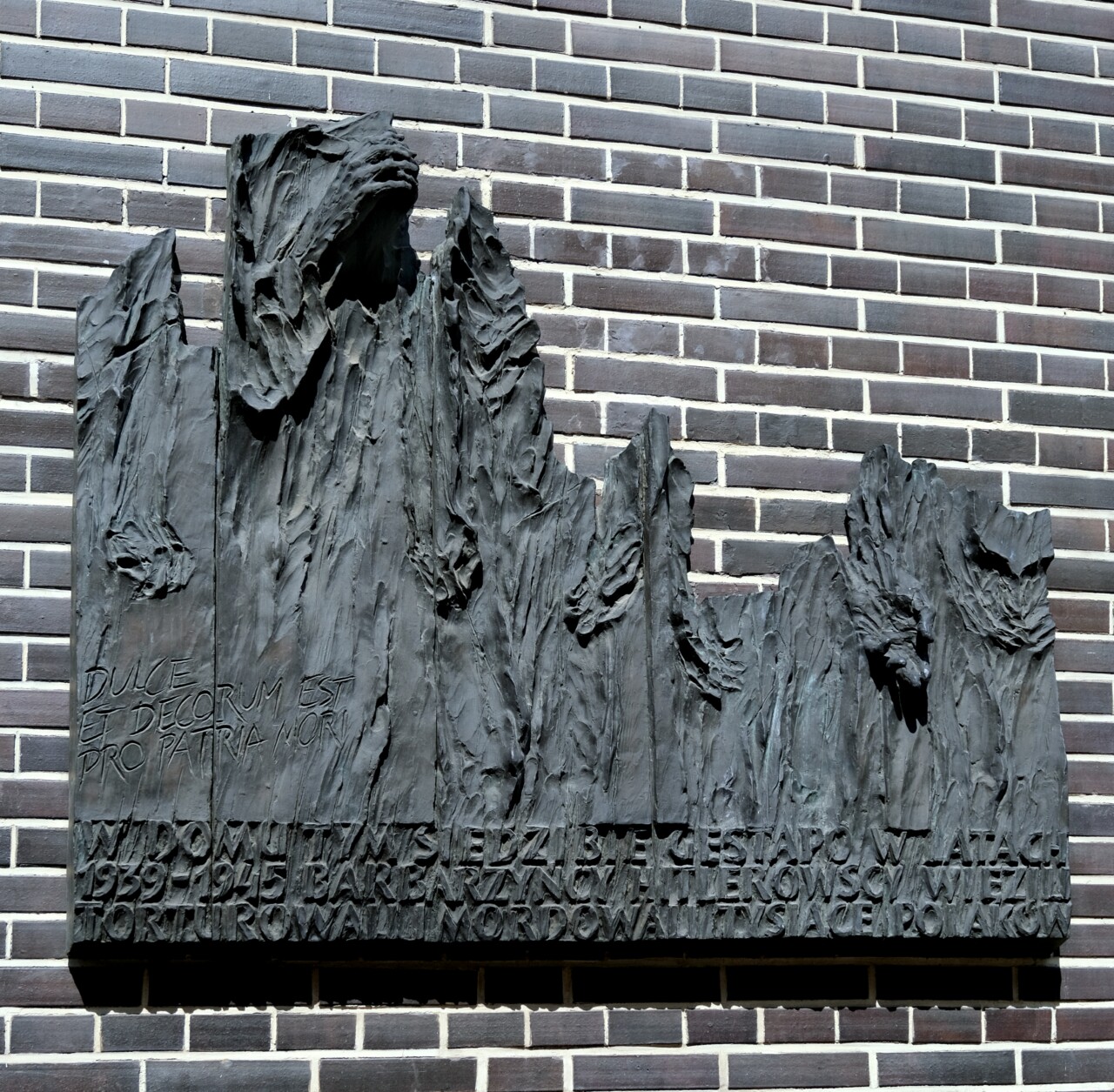 Rzeźba–tablica upamiętniająca ofiary gestapo na budynku dawnej siedziby gestapo w Krakowie, brąz, 1999 r.