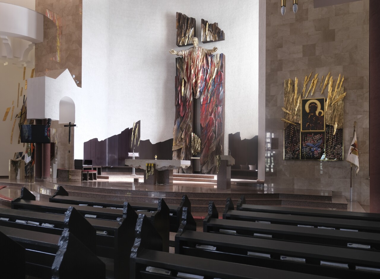 Aranżacja przestrzenno-rzeźbiarska w kościele w. św. Jadwigi Królowej w Krakowie