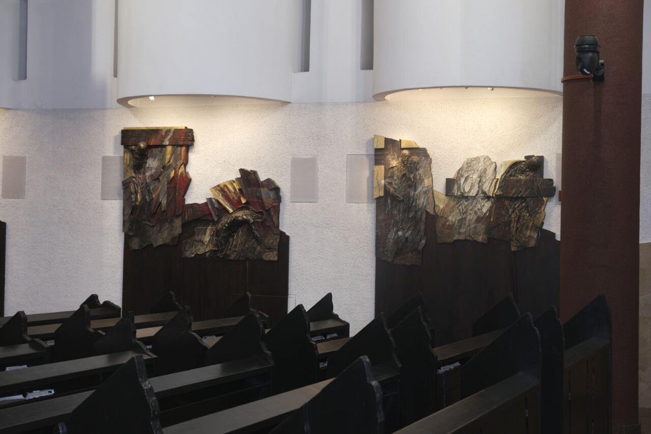 Aranżacja całości wnętrza, w tym rzeźba w prezbiterium, mensa, ambona, chrzcielnica (z Adamem Brinckenem - malarstwo), 1994–1999