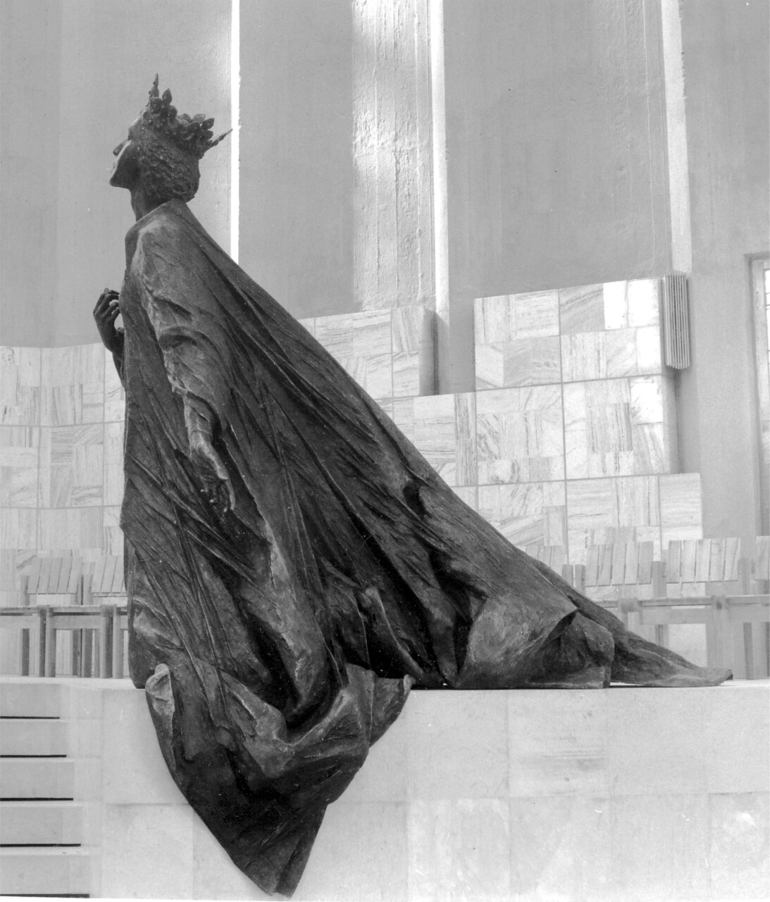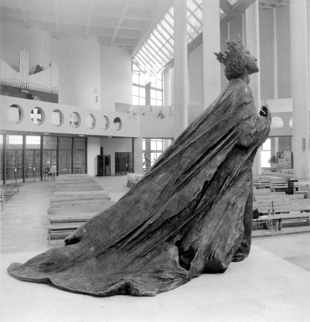 Ukrzyżowanie, (parafraza gotyckiego krucyfiksu wawelskiego) żywica poliestrowa, 380 cm; Królowa Jadwiga, brąz, 330 cm, 1989-1990 r.